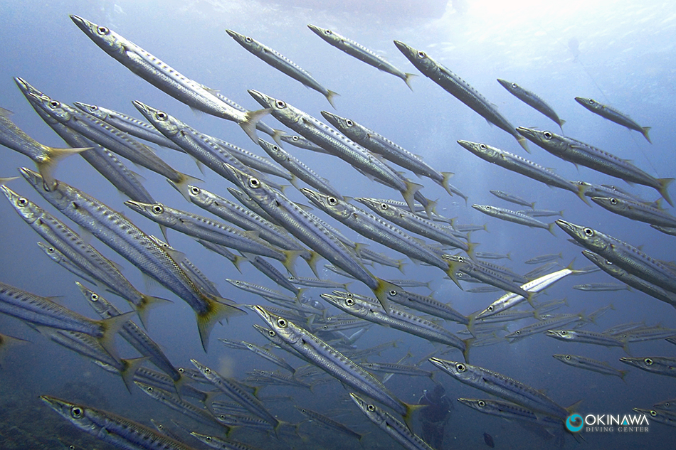 ロクセンスズメダイ、ツバメウオに加えて、真栄田岬はタイワンカマスが良い群れ!!