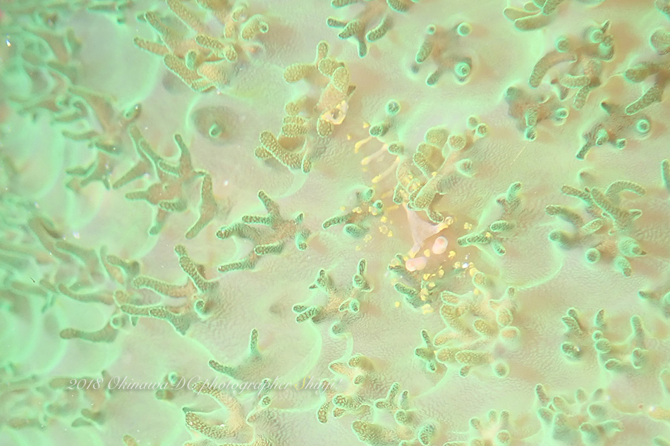 緑色の綺麗なイソギンチャクと一緒にパチリ!