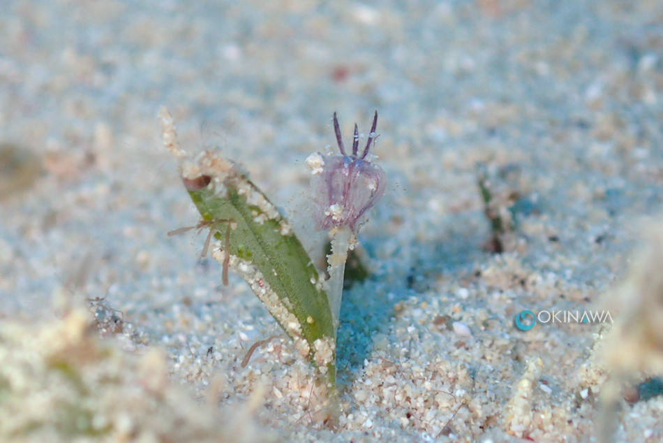 なかゆくいの砂地にて。ウミヒルモの葉だけでもなんだか可愛いのに、こんなに花らしい花を咲かせるんですね~!