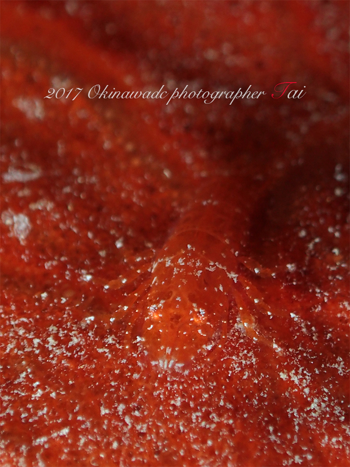 赤色のパロンシュリンプ、真上から撮ったら擬態感が半端ない!