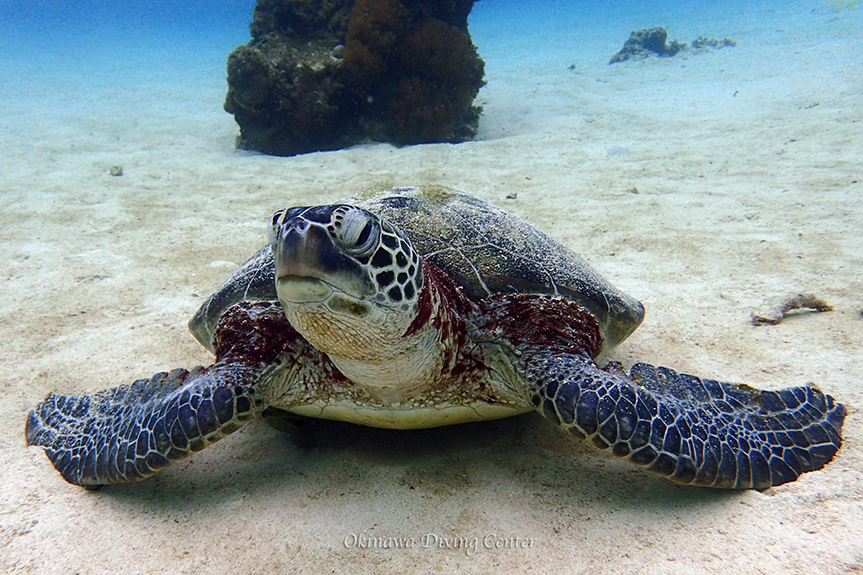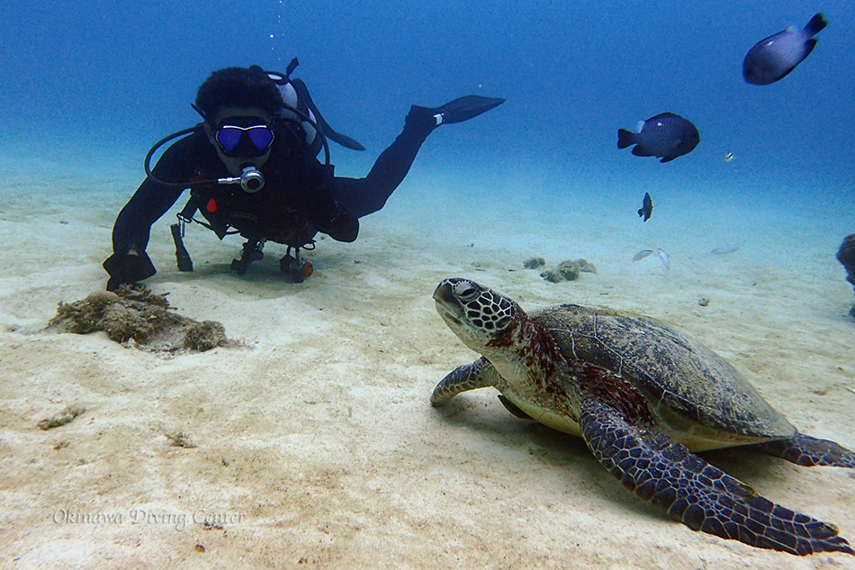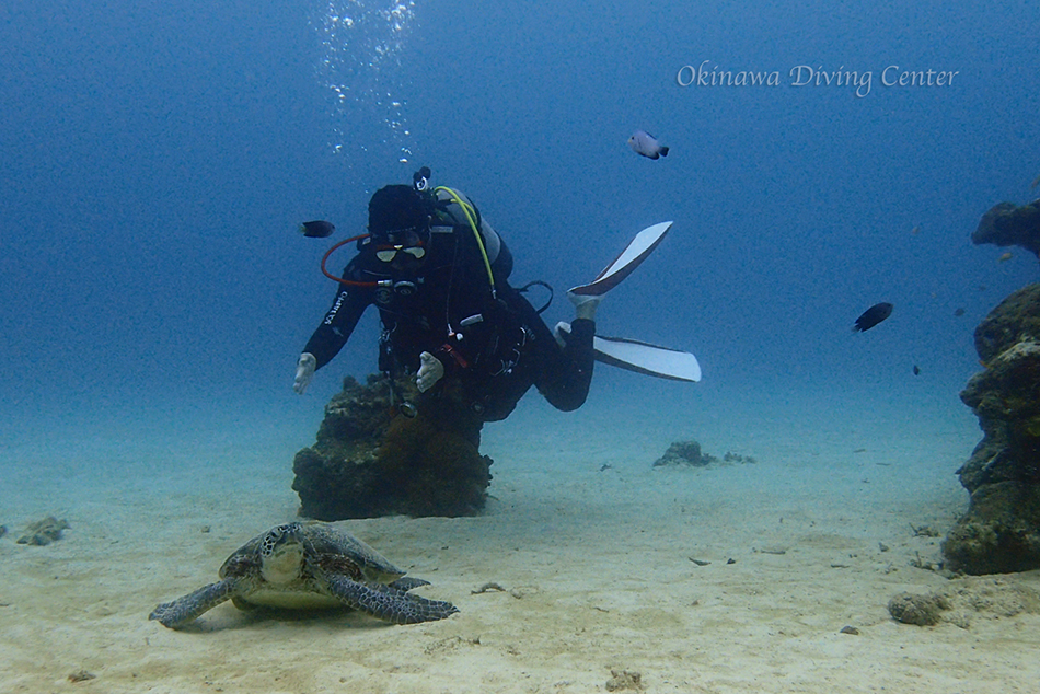 ゆっくりと潜ってる中でさらに行ゆっくりなカメ発見。