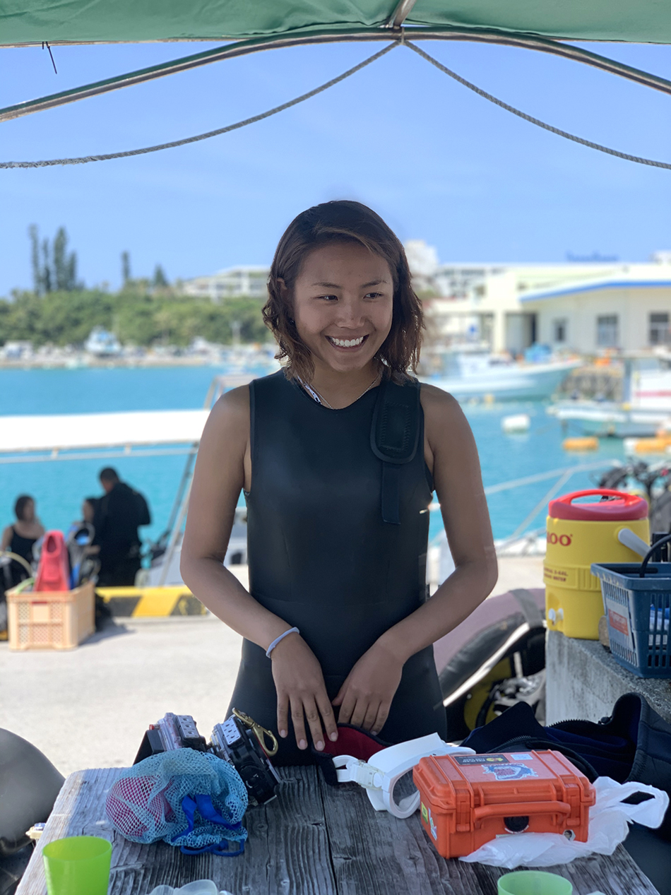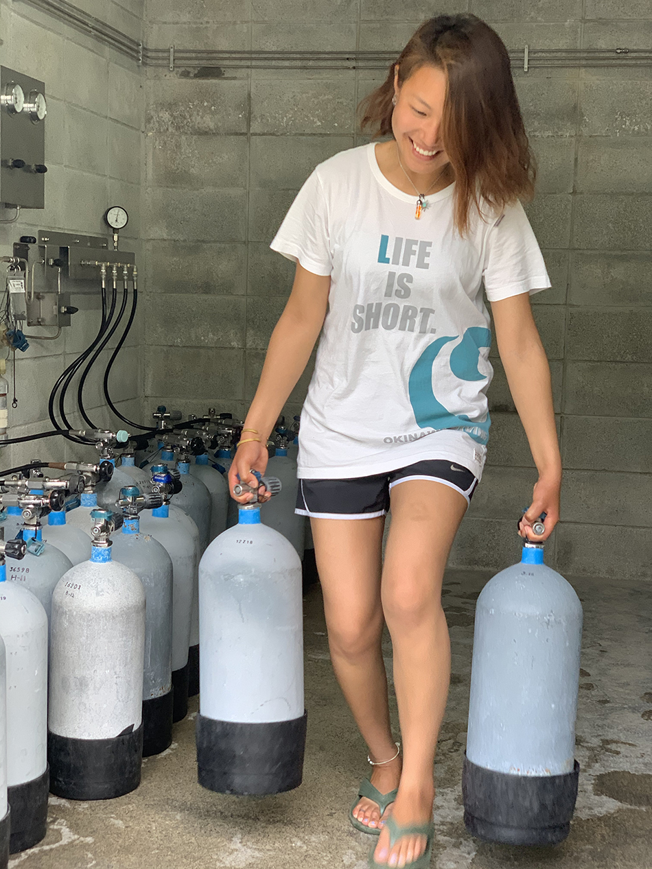イントラ1年目の彼女は何しろ明るく元気!!当たり前の事だが誰に対してもしっかりと挨拶ができる、5分前行動ができ遅刻しない、ダイビングに対する考え方、動き、挨拶、礼儀などと21歳の若さでは最近に居ないタイプと繰り返し言うが当たり前の事を先ずはしっかりとできるが嬉しくて仕方なかったなー。