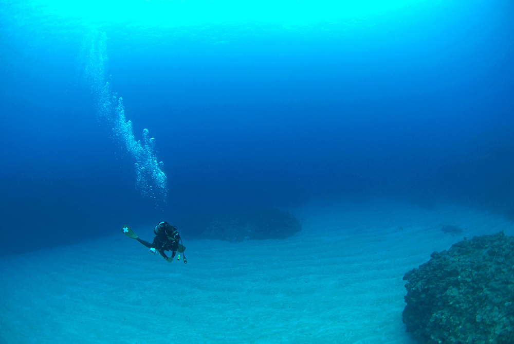 当店から徒歩3分の港からのご案内で「青の洞窟」を始め地形、マクロ、ワイド撮影とマルチにゆっくりと潜れる場所です。 ダイビング初日はここがオススメですよ♪