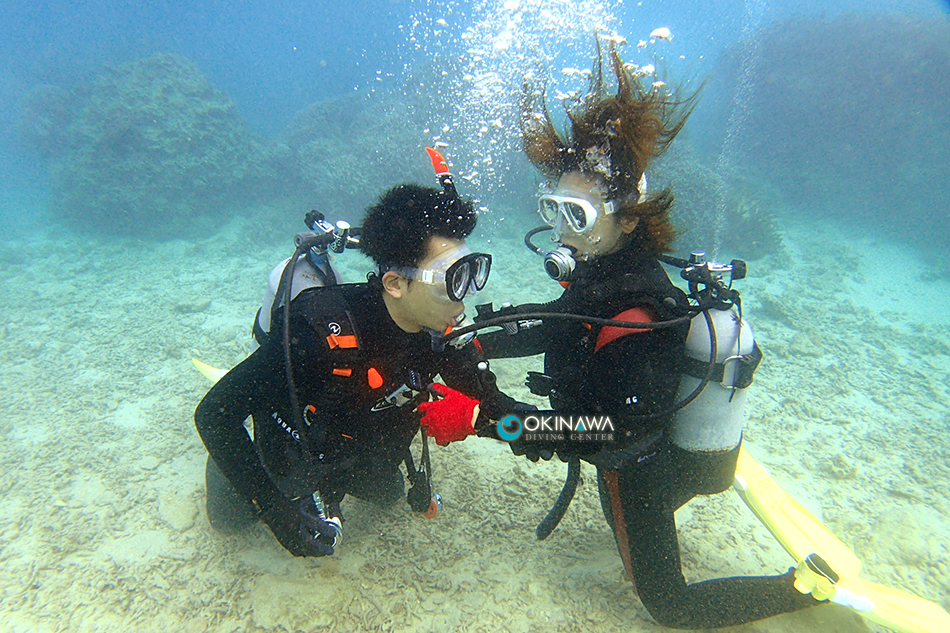 昨日、今日と池袋でマリンダイビングフェアが開催される中で、こちら恩納村では新ダイバーの誕生です!
